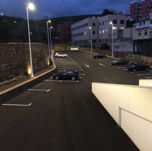 Redacción del proyecto y dirección de obra de la instalación eléctrica de un aparcamiento público en Guía. El alcance incluyó el diseño del alumbrado interior y exterior, circuitos de fuerza, cuadro general de protección y maniobra, sistemas de emergencia y cumplimiento del Reglamento Electrotécnico de Baja Tensión.